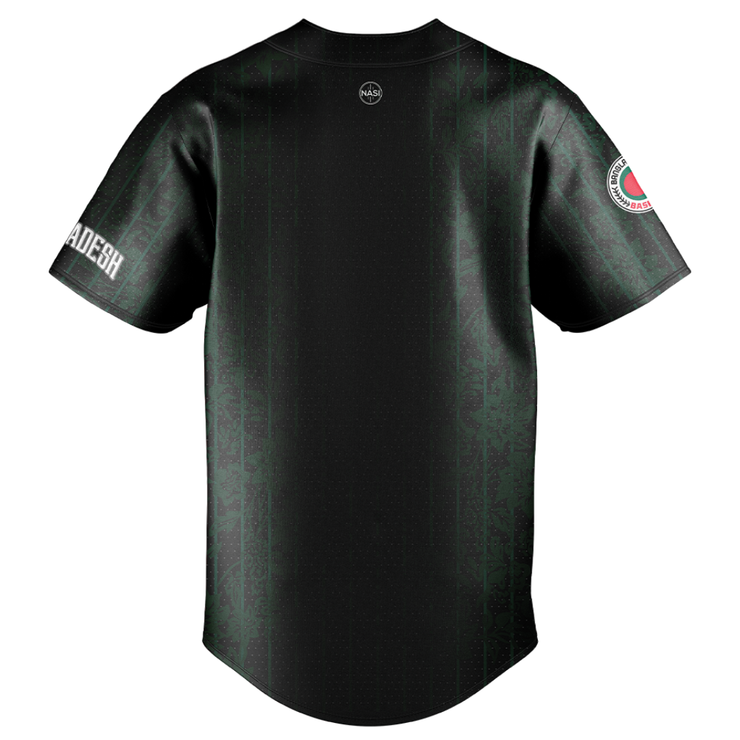 Introducing the Bangladesh baseball jersey, a symbol of pride and patriotism. This sleek black jersey proudly showcases the vibrant red and green colors of the Bangladeshi flag, spanning across the entire front. With each wear, you embody the unwavering pride and love for your homeland, Bangladesh, as you step onto the field with determination and spirit.