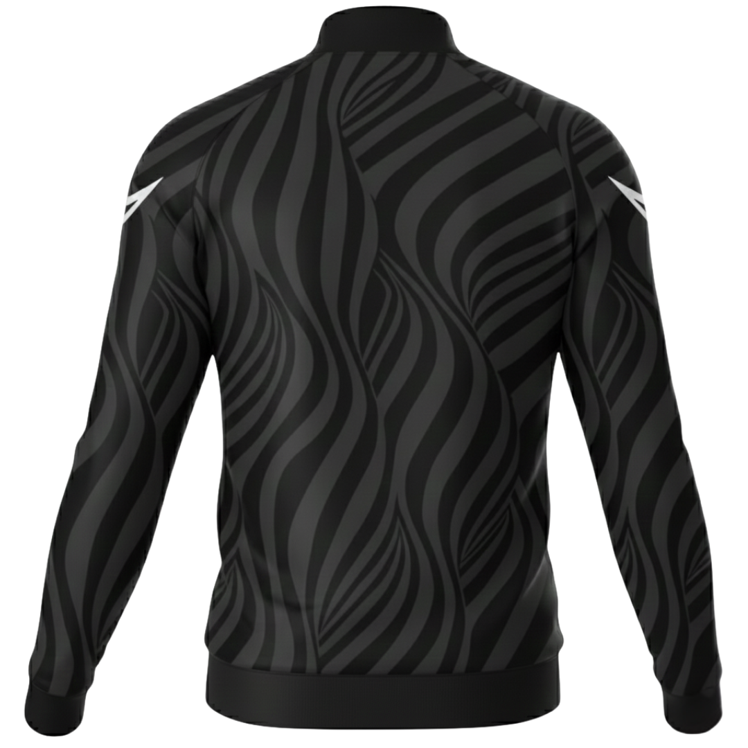 The Rebar V2 jacket brings a darker, stronger interpretation of the original design. The flowing wave pattern now shifts into deep black-on-black tones, giving the piece a bold, stealth-like aesthetic. The design feels dynamic and powerful, with the curves creating motion without any loud elements.