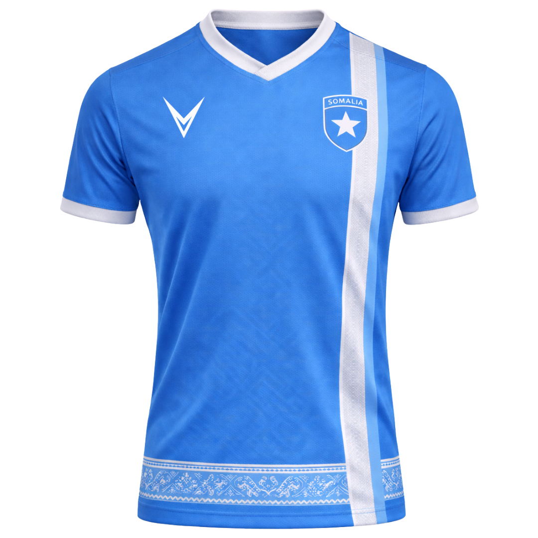 The Azure Jersey celebrates the identity and pride of Somalia through the bright sky-blue color that defines the Somali flag. The design reflects openness, unity, and the strong connection between the Somali people and the vast skies and oceans surrounding the Horn of Africa.