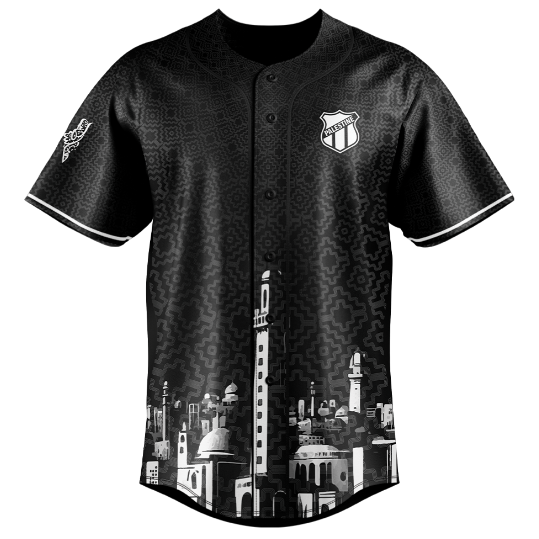 Introducing the Gaza jersey— a striking black design featuring the iconic Gaza skyline on both the front and back. The Palestine emblem is proudly displayed on one side of the chest, while the word "Palestine" is artistically rendered in Arabic, forming the outline of the country. This jersey captures the essence of Palestinian pride and heritage with a bold, contemporary style.