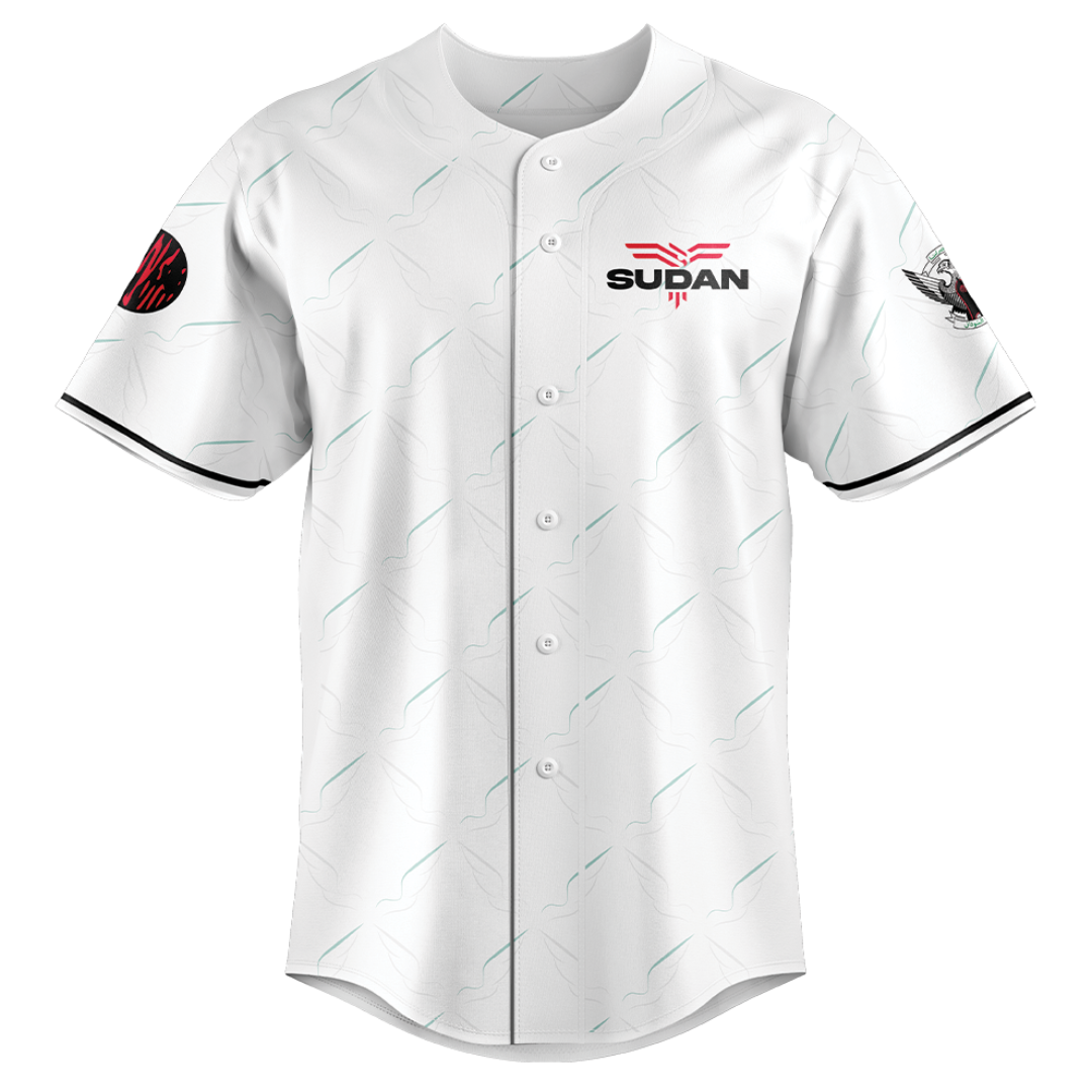 Introducing the Sudan-inspired Kush jersey! This striking white jersey features "Sudan" in bold black font across one side of the chest, complemented by a dynamic design depicting an eagle that symbolizes Sudan's strength. Each shoulder sleeve showcases unique designs—one featuring an eagle representing the nation and the other showcasing a significant symbol of Sudanese heritage. A perfect blend of style and pride for any fan!